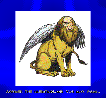 To enter this Magical Hall of heros...you must awnser the queston of the Sphinx.....